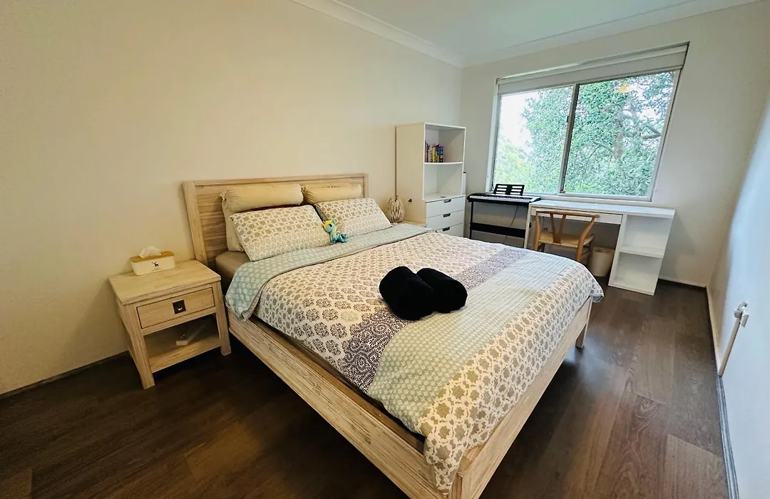 Tranquil Retreat In Chatswood apartment looks out onto the garden and comprises a balcony and a seating area. This accommodation also features parquet floors. A bathtub and a shower are offered in the bathroom. Additionally, you'll find a hairdryer, bath sheets, and slippers.